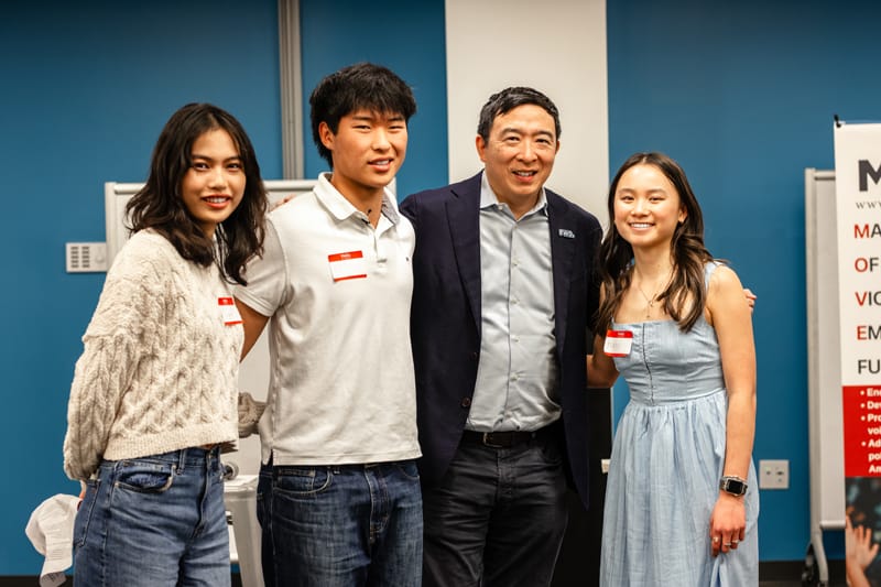 三位小主持人,Eric Ye, Katie Shen, 和 Maggie Su, 在繁忙的课业和大学入学申请之余,抽出宝贵的时间提前做足了功课。首先由他们代表在场的青少年向嘉宾提问。在回答问题的过程中,Andrew 分享了自己作为年级中仅有的两名华裔学生在成长过程中经历的困扰和挑战。然而他并没有让少数族裔的身份束缚自己学业和职业发展,反而充分发挥自己的聪明才智,转劣势为优势。这份灵活和坚韧使他在第一次创业失败后,能迅速整顿心情,再次大胆尝试,并获得了巨大的商业成功。公司被收购后,Andrew 创立了名为 “为美国就业” 的非营利性奖学金计划,旨在 “通过动员美国下一代企业家在美国城市创业来为美国制造就业机会,并为这些创业者提供创造就业所需的技能与资源”。 Andrew 并没有止步于此。2020 年,他参加了总统选举民主党初选。次年,参与了纽约市长竞选。为了更好地实现自己”重振公平、繁荣的经济” 的政治理想和抱负,Andrew 成立了独立党派前进党 (Forward Party)。Andrew 从一名内向腼腆的华裔男孩成长为著名企业家、政治活动家的人生历程,给现场的华裔青少年及家长带去了极大的鼓舞和启发。
